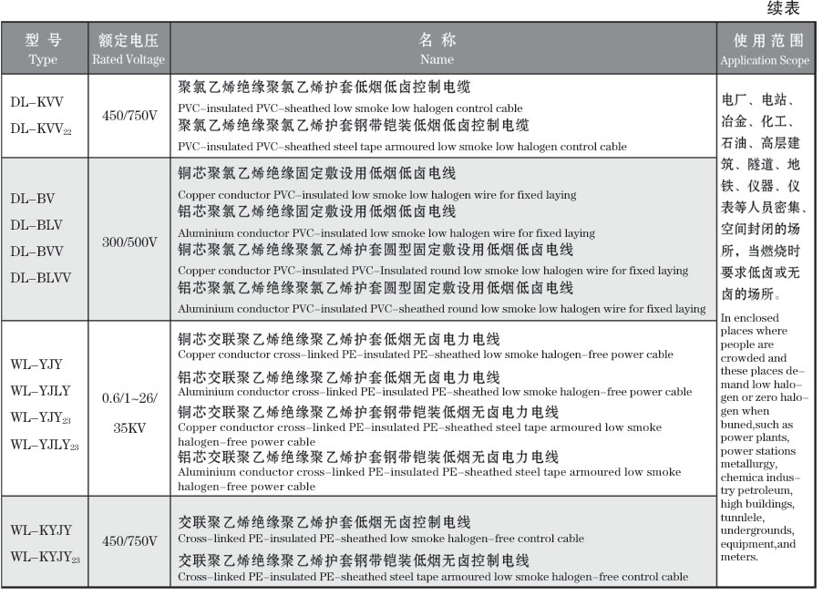 1、 电缆的额定电压、导体长期允许工作温度、电缆敷设高温度等应符合低卤、无卤要求相应产品的要求。