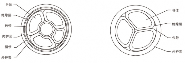 交联聚乙烯绝缘粗钢丝铠装聚氯乙烯护套(阻燃)电力电缆敷设在竖井,海底或高落差地区,电缆能承受较大的正压力和拉力的作用